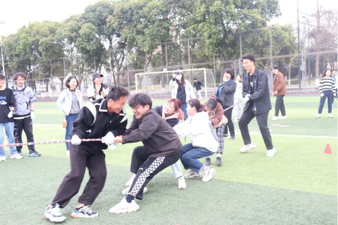 趣味运动会项目涵盖“五毛一块破冰游戏”、“同舟共济”、“双人背对背夹气球”、“抢答版两人三足”以及拔河友谊赛,实行积分制,参赛人员达六十余名。志愿者们提前将运动场地布置完善,并为参赛人员讲解竞赛规则,为运动会的顺当进行供应了有力保障。