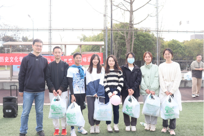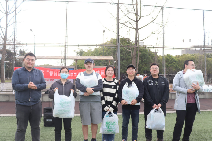经过精彩又激烈的数轮比赛之后,最终决出了此次运动会的前三名。第三名来自本科二年级的第四组,第二名为来自本科三年级的第五组,第一名为来自研究生二年级的第七组。竞赛结束后,由老师们为获奖团队颁发奖品并合影留恋。至此,本届“春日趣味,师生共竞”趣味运动会在大家的欢笑与掌声中落下帷幕。